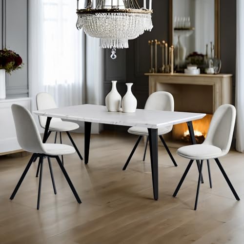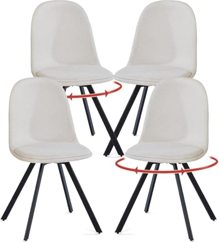 FurnitureR Set von 4 Stoff Dreh Esszimmerstühlen, 360° Dreh Freizeit Küchenstühle für Esszimmer Wohnzimmer Küche, Beige